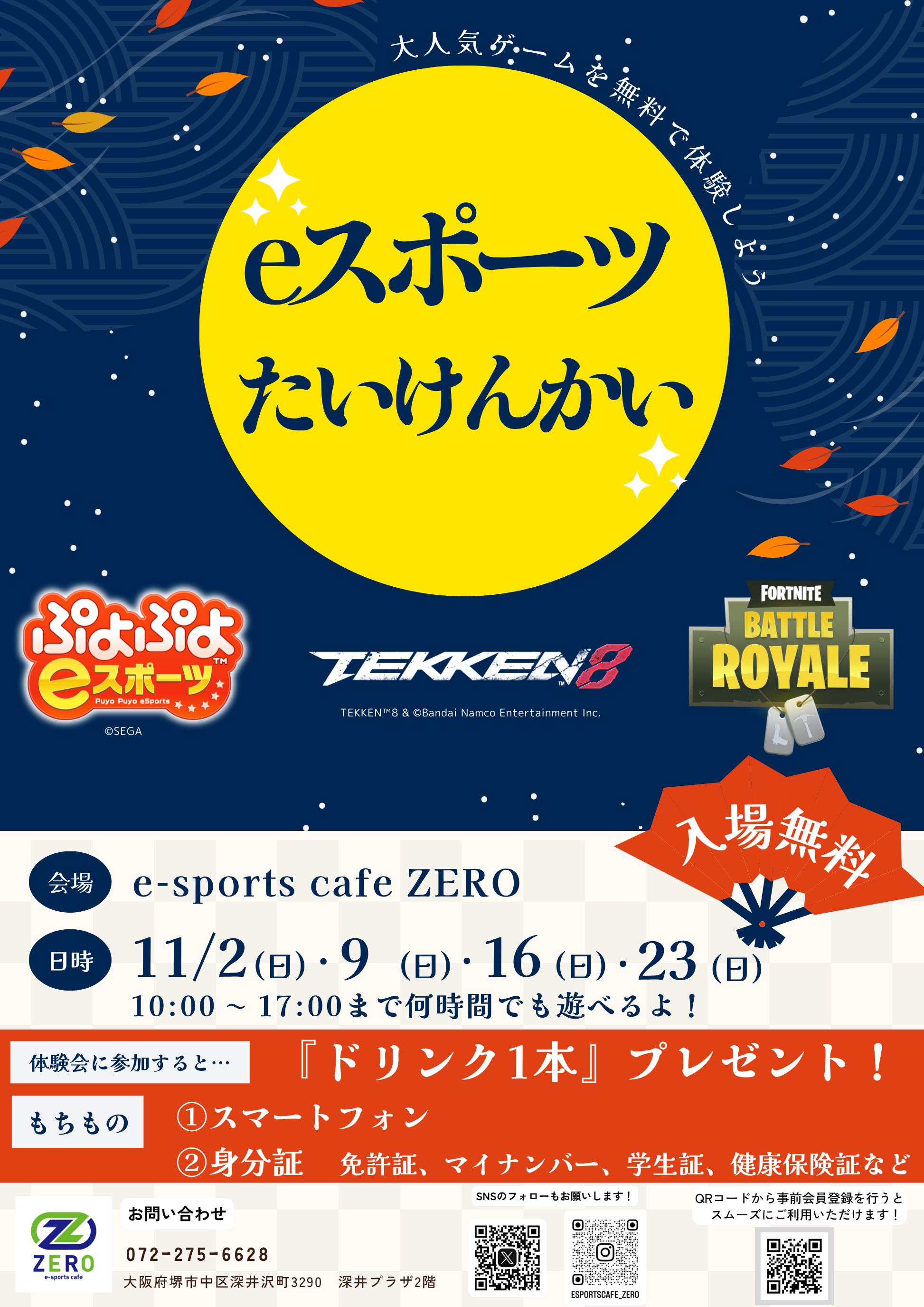 11月eスポーツ無料たいけんかいのお知らせ! 2025.11.07 最終更新日時 : 2025.11.07 ZERO 11月2日、9日、16日、23日はハイスペックPCを使用した eスポーツたいけんかいを実施しています🙋♂️ 『#鉄拳8』 『#ぷよぷよeスポーツ』 『#フォートナイト』を体験しよう! ゲームを体験するとドリンクを1本プレゼント 🎁 スタッフがPCの使い方も教えます👍 当日は何時間でも3種類のゲームが遊び放題! 会員登録が既に済んでいる方も参加できます! お時間が合う方はぜひ、ハイスペックPCで大人気ゲームを体験しにきてください☺️